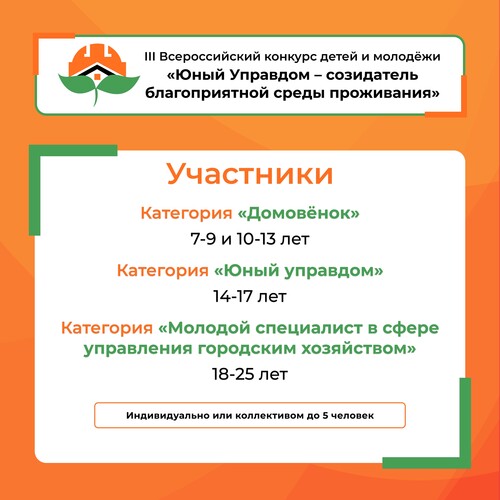 Заканчивается прием заявок для участия в третьем Всероссийского конкурсе детей и молодёжи «Юный Управдом – созидатель благоприятной среды проживания»