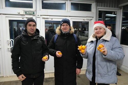 Новогоднее праздничное настроение пришло на кингисеппские предприятия ЕвроХима на пороге 2026 года. Административное управление "Фосфорита" совместно с отделом по связям с общественностью и профсоюзом организовали новогоднюю акцию для всех сотрудников кингисеппских предприятий. На центральной проходной и проходной цеха КОФ работников встречали Дед Мороз и Снегурочка — с музыкой, улыбками и приятными сюрпризами. Каждому дарили шоколадки, лимоны и мандарины, напоминая: праздник начинается с внимания и хорошего настроения.