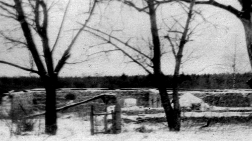 За деревней у “головной сосны”, напротив погоста, отряд остановился. Женщины крестились на могилы дорогих людей и предков. Некоторые отковыривали кусочки мерзлой земли с родного поля и завертывали их в тряпочки, по старому обычаю. РОДНАЯ ЗЕМЛЯ СИЛЬНА. ДАЖЕ НА ЧУЖОЙ СТОРОНЕ НЕЛЬЗЯ ТЕРЯТЬ СВЯЗИ С НЕЮ. Сила в ней, в земле, заключается особая. Она всегда напомнит о родине и даст особую силу в несчастье».