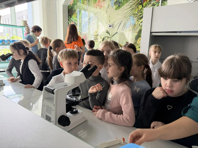 Для учеников начальных классов, Неделя космоса началась с настоящего погружения в историю. Уже на входе в технопарк их встречали гирлянды космических шаров и бюст Юрия Гагарина, напечатанный на 3D-принтере.