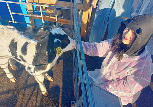Особое умиление вызвало знакомство с телятами, некоторые девчонки, не скрывая чувств, пищали от восторга. Маленькие коровки тоже с интересом разглядывали посетителей, кто-то из них рассматривал гостей, не выходя из своих маленьких синих будок.
