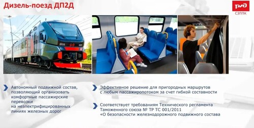 Предполагается, что новый дизель–поезд ДП2Д выйдет на направление «Санкт-Петербург — Кингисепп — Ивангород» уже в 2026 году. Поезд из шести вагонов на 636 сидячих мест заменит трехвагонный, который эксплуатируют на направлении в настоящий момент.