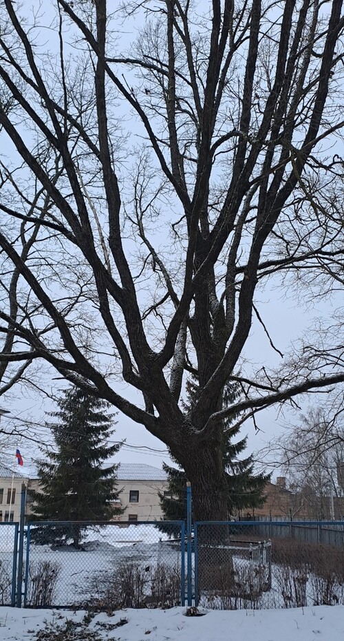 На архивных фото видно: могучий ствол обнесён необычной металлической оградкой, украшенной круглыми шарами. Сегодня это дерево утрачено — оно упало, но до наших дней сохранились и фотографии, и остатки ограды.